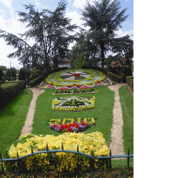 L’impasse, pas très large, ni très longue, débute par la principale composition florale d’Olivet et probablement la plus célèbre, je veux parler de la pendule.
